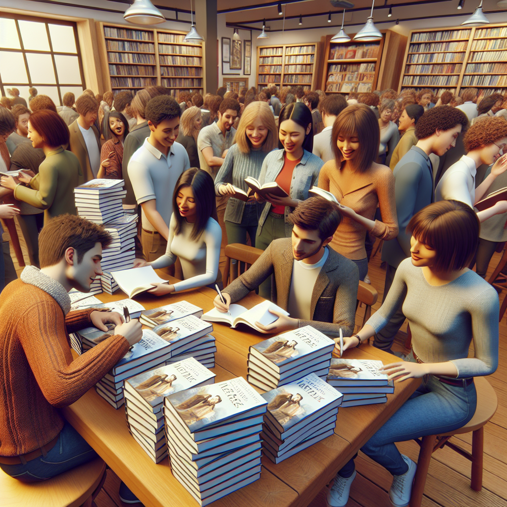 A escritora Tatiana Barduco realiza sessão de autógrafos para seu novo livro de contos intitulado Breve, Longa, Eterna.